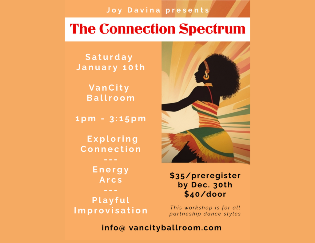 Be sure to join us for our beginner’s lesson at 7pm and stay to work with our instructors during the open dance from 7:45-10pm. And only a $10 cover for the entire evening.